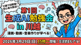 川越で初めてとなる生成AI勉強会を開催します。生成AIに興味がある方、これから活用してみたい方、実際にどのように仕事や日常で使えるのか知りたい方に向けた、わかりやすく実践的な勉強会です。 生成AIを「難しそう」で終わらせず、まず触れてみる・知ってみる・使ってみるための第一歩として、ぜひお気軽にご参加ください。 今回は、生成AIの基本から活用事例まで、プレゼン形式で学んでいただき、その後は質疑応答や参加者同士の自己紹介・感想シェアの時間もご用意しています。 初めての方でも安心してご参加いただけます。 内容としては、漫画作り、10秒のショート動画でのSNS情報発信、1分〜10分のプレゼン動画作成、SUNOでの歌作りと盛りだくさんになっています。 1回では理解できないかもしれません。何度もご参加いただき、理解を深めていただくことも必要かもですが、まずは、ご参加ください。 日時:2026年3月29日(日)15:00〜17:00 ※受付開始 14:50 参加費:3,000円 当日の流れ 14:50 受付開始 15:00 開始・司会者挨拶 引き続き、生成AIプレゼン 16:20 質疑応答 16:30 参加者自己紹介・感想シェア アンケート記入と次回開催(4月予定)のご案内 17:00 終了 17時からは懇親会を開催します。 生成AIのことをもう少し気軽に話したい方、参加者同士で交流したい方、今後の活用について情報交換したい方は、ぜひご参加ください。 勉強会では聞ききれなかったことや、実際の活用事例、仕事への取り入れ方など、ざっくばらんにお話しできる時間にしたいと思っています。初参加の方も大歓迎です。 ※懇親会会場については、当日ご案内いたします。 ※会場で実施できるか確認中です。 | |