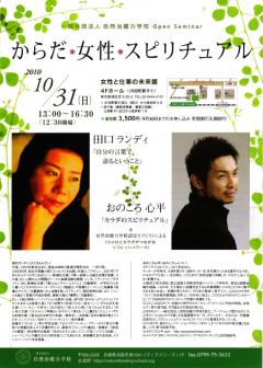 | 2010年10月31日(日) 13:00〜16:30 | 主催:自然治癒力学校・セミナー実行委員 |
