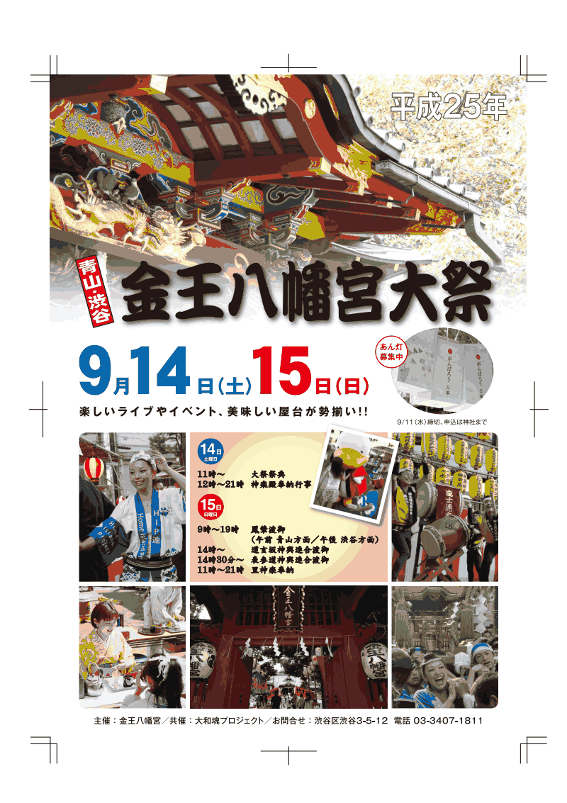 | 2013年9月14日(土) 11:00〜21:00 | 主催:金王八幡宮 |