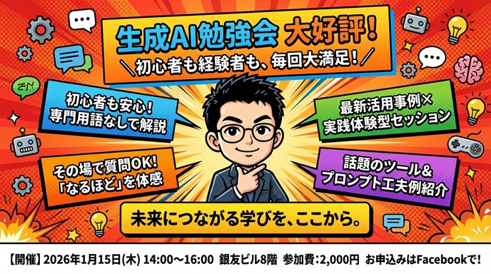 | 2026年1月15日(木) 14:00〜16:00 | 主催:生成AI勉強会銀座休憩講師 |